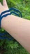 Stylish blue wavy metal bangle bought from and artisan at the Salamanca market in Hobart, Tasmania.