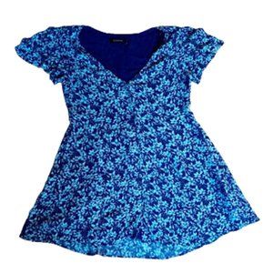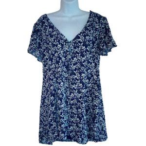 --- Blue White Floral Short Dress or Tunic Top Fits Large XL