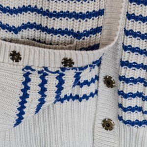 Blue & White Striped Thick Knit Cardigan Sweater