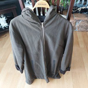 Can be both hooded and Non, zipper on hood unzips to allowed hood halves to be placed over the shoulders like a coiler (See photos)