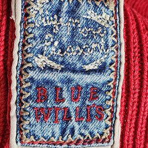 Blue Willi's Red Cotton Canvas Knit Crystal Button Blazer Jacket
