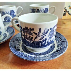 Blue Willow Porcelain Teacup and Saucer set of (4) Churchill England
