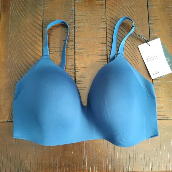 Experience comfort with this blue wireless bra, perfect for everyday wear.