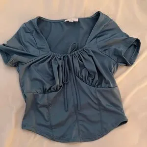 Stylish blue women's top with a flattering gathered front. Perfect for casual outings or a night out.