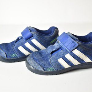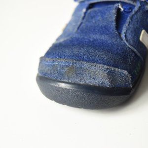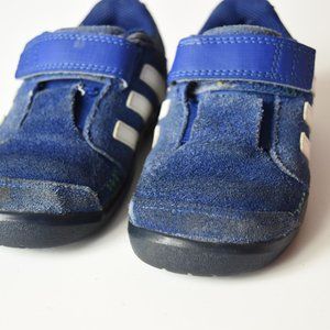 Blue suede 3 stripe kicks/ running shoe with Velcro fastening.