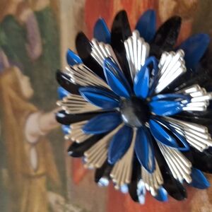 Blue and Black Floral Metal Brooch