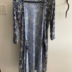Blue and Cream wrap dress size medium. Would fit someone 8-12.