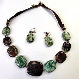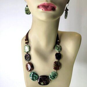 Blue and Green Disc Flat Beaded Necklace with Earrings