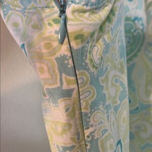 Step out in style with this blue and green paisley dress. Perfect for any occasion, this dress combines comfort with a chic design.