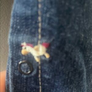 These stylish overalls feature a delightful combination of blue denim and pink accents, perfect for adding a touch of fun to any casual day. The cropped legs and full-length straps offer a comfortable fit, while the distressed details add a trendy flair. Ideal for everyday wear, these overalls are both practical and fashionable. For the horse lover ❤️ check out the cute embroidered horses