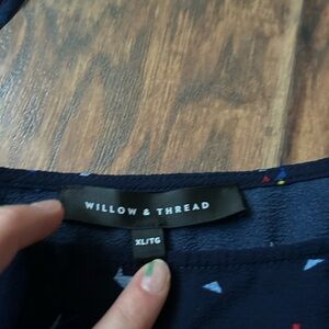 Blue and Red Relaxed Tie Front Blouse