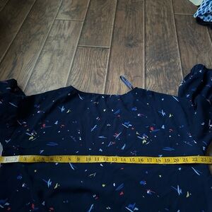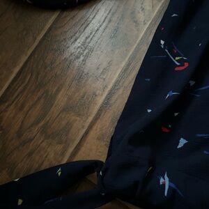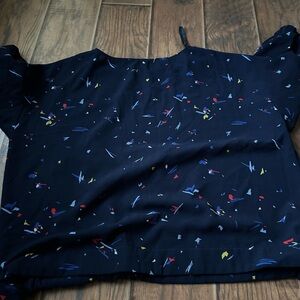 This vibrant blouse features a relaxed fit with a playful tie front, showcasing a lively mix of blue and red hues. The colorful specks create a fun, eye-catching pattern, perfect for adding a touch of whimsy to your outfit. Ideal for casual outings, this top combines comfort with style effortlessly.
