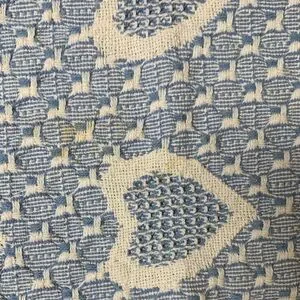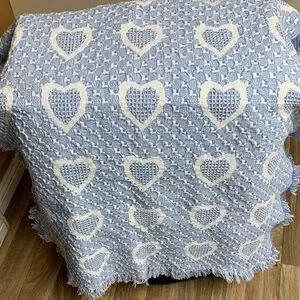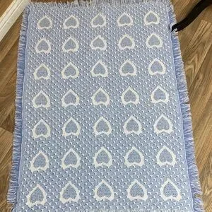 Cozy up with this charming blue and white rug, featuring a delightful heart pattern. Perfect for adding a touch of warmth and style to your home. Approximately 32x 45 inches.