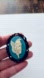 Featuring a blue and white lily of the valley cameo, crafted from hard resin and set on a black Victorian-style bezel with antique detailing.