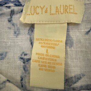 Blue and White Linen Blouse EUC Very flattering and cute Size L