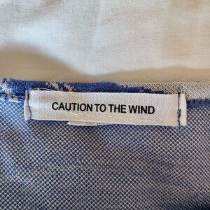 Baby blue with white marble swirl mini dress by Caution to the Wind. Side cutouts, empire waist. Size tag has been cut off, bust measures 15 inches laying flat, waist is 14 inches, hips 17 inches, and length is 30 inches. Fits like a S-M with a good amount of stretch. Great used condition. Cat friendly, nonsmoking home.