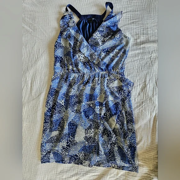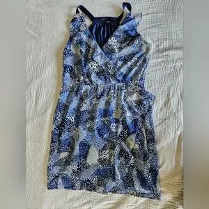 Banana Republic, blue, white and grey patterned dress. size 4 regular. Worn once. Excellent condition. no pulls, tears, holes. Perfect for any occasion.