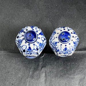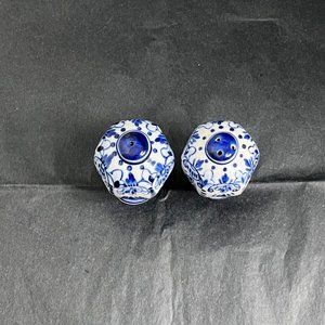 Blue and White Salt and Pepper Shakers, Ceramic Pottery