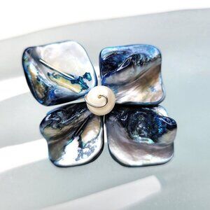 Blue and White Sea Shell Freshwater Pearl Bead Asymmetric Flower Adjustable Ring