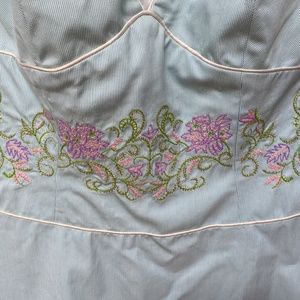 @itsyusandy hello. There are no fabric tags but it seems like cotton with a rayon/poly lining. I also noticed the tiniest spot when I checked, that I didn’t try to remove but think would come out. I’ll upload a picture in the listing.