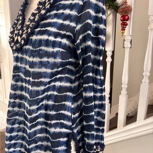 Blue and White Tie-Dye Tory Burch Tunic or Beach Cover Up