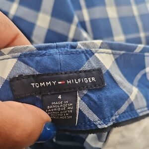 Stylish blue and white plaid shorts. Perfect for casual outings.