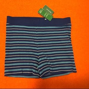 Blue and green striped lounge organic cotton knit short new with tags. Soft 100% organic cotton jersey, ribbed texture, wide covered elastic band, stretchy, breathable and versatile. Colour is accurate in the stock photos, mine are taken in artificial light. Marked sized L, please see pictures for measurements. This item comes from a smoke free, pets friendly home. Recycled bags/box used when possible. Please, let me know if you'd like any additional pictures and/or measurements or other info. Thanks for watching!
