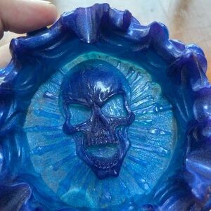 Blue and purple rain skull ashtray- skulls around outside. New - great gift
