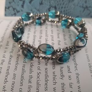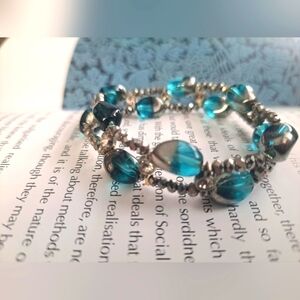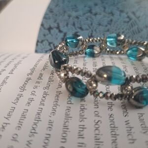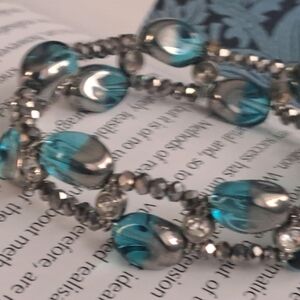 Blue and silver tone bracelet with hrinstones