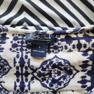 Blue and white lucky brand dress. 100 percent cotton. Pit to pit 18 inches. Sleeves 13 inches and length of dress is 35 inches.