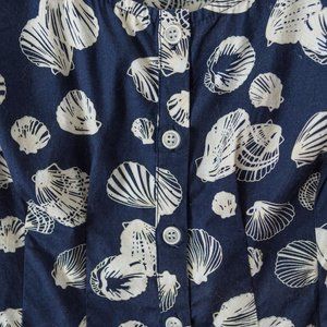 Blue and white seashell button-up shirt