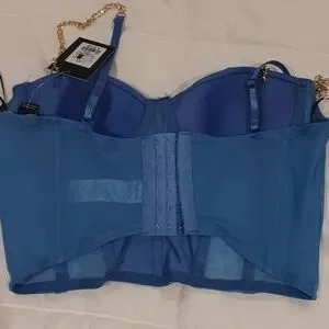 blue boostier with gold chain straps. never worn
