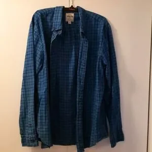 blue checkered button up shirt