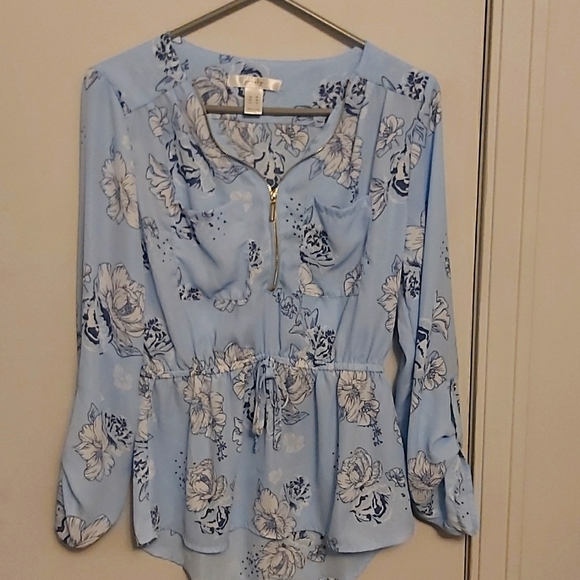 Cute top, front zipper, long sleeves, size M. Pit to pit measures 20 inches
