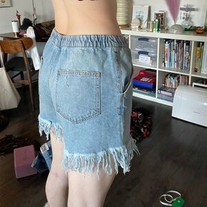 Blue frayed jean shorts, lightly worn Elastic waist Size US 8