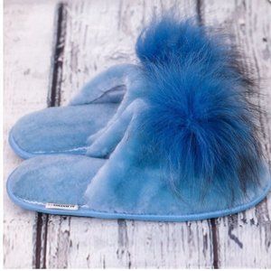 Blue fur sheepskin slippers "Angel"
