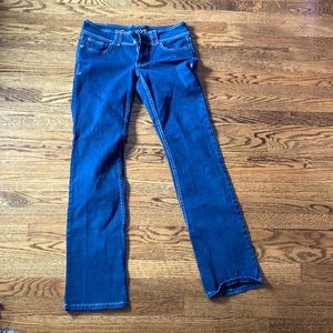Dark tint blue jeans, great condition, double button and pockets