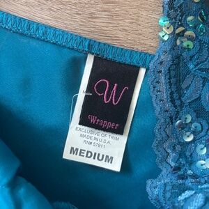 Blue lace trim cami top with sequin detailing by wrapper, size medium #fairycore #y2k