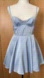 Light blue mini dress with adjustable straps and crinoline skirt.