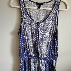 Blue patterned sleeveless romper