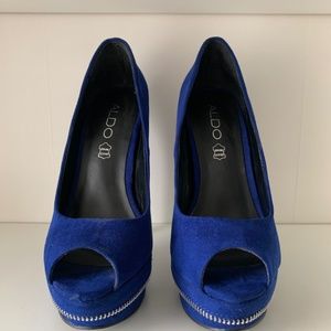 Blue suede Pumps with zipper detailing Brand new, never worn