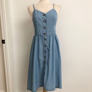 Cute light blue button-up sundress, spaghetti straps, stretchy back, midi- a-line skirt. Japna brand (label cut out) , perfect condition.