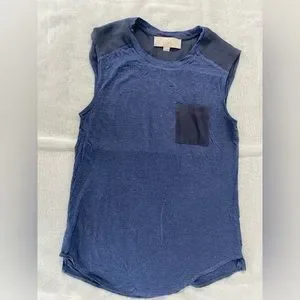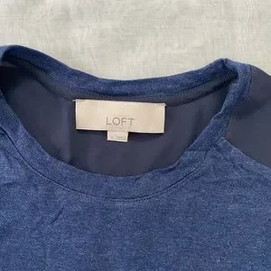 Size: US S Brand: Loft Material: 100% rayon, 100% polyester Colour: dark blue Chiffon style shoulder detail Smoke free. Pet free.