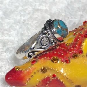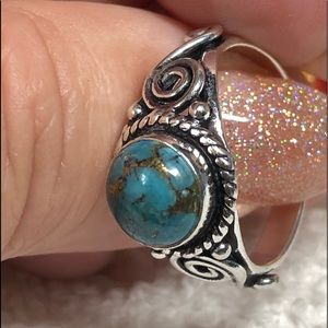 💍💕Blue turquoise with copper veining sterling ring-stamped 925 -8
