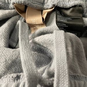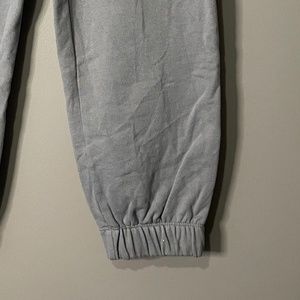 Blueish grey sweat pants purchased from H&M. These are in excellent condition cause I only wore them once. I really liked them but was not a fan of how they fit. They are a bit thicker and I just didn't like how they made me look. They are gorgeous pants and are a beautiful color. The waist is adjustable but they are a size Large.