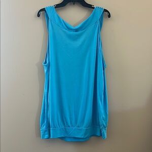 Elegant blue sleeveless top with a stylish neckline. Perfect for casual outings or a day at the office.