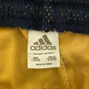 Dark blue mesh layer over yellow inside, barely worn with no defects. Labelled as a youth L, can easily fit a youth XL or mens S. Loose fit, pretty wide leg opening