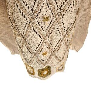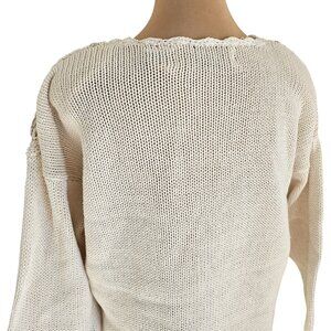 Blueberry Hill Vintage White Knit Floral Pattern Knit Crochet Sweater Sz M