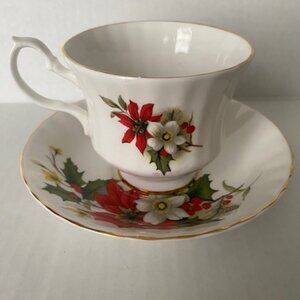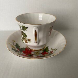 Bluebird Fine Bone China Made in Canada. Christmas theme Tea Cup and Saucer