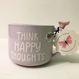 Bluebird and Willow Butterfly Coffee Tea Mug Think Happy Thoughts Cup